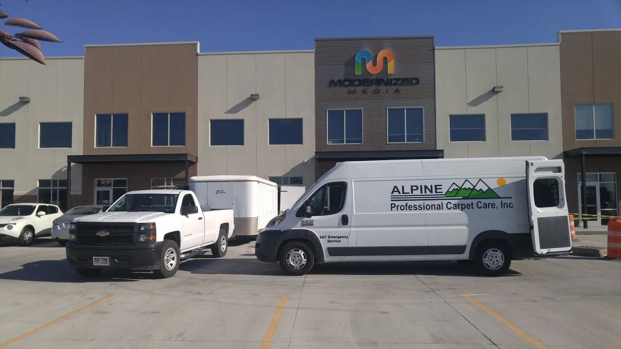 uSING OUR CARPET CLEANING VAN AND OUR CARPET CLEANING TRAILER TO CLEAN THE CARPETS IN THIS COMMERCIAL BUSINESS